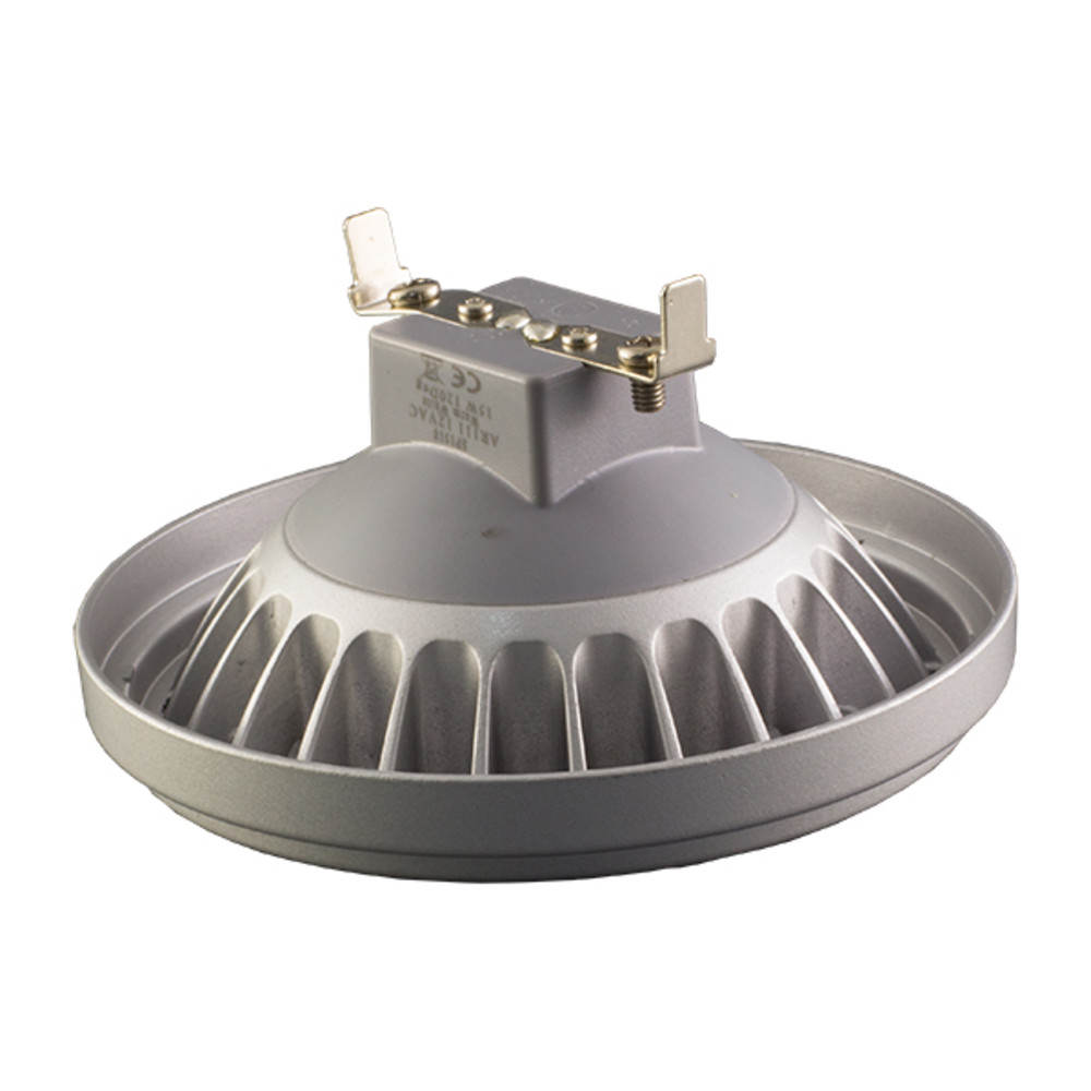 Az AR111-es LED lámpák 12 voltos egyenáramról működnek. Speciális lámpatestekbe beépíthetőek. Megtáplálásuk két saru segítségével történik.
