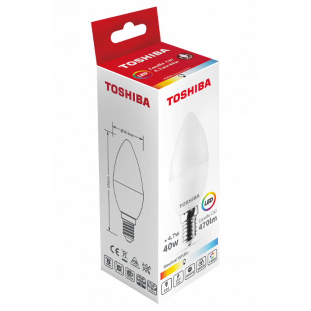 LED lámpa , égő , gyertya , E14 foglalat , 4.7 Watt , 220° , természetes fehér , TOSHIBA , 5 év garancia