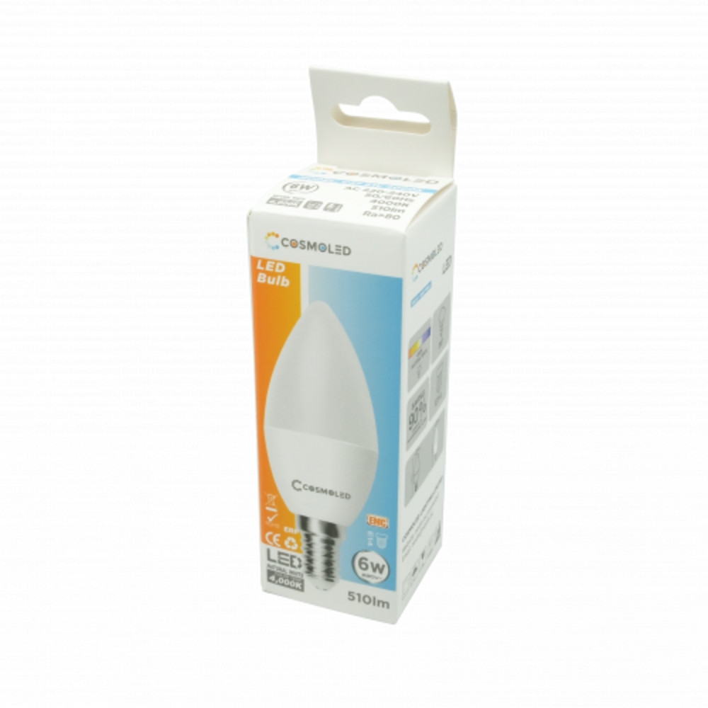 LED lámpa , égő , gyertya , E14 foglalat , 6W , természetes fehér , COSMOLED