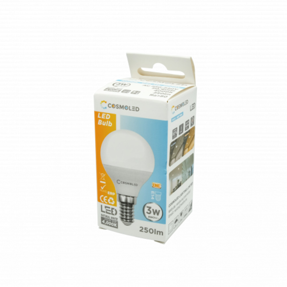 LED lámpa , égő , kisgömb , E14 foglalat , 3W , természetes fehér , COSMOLED