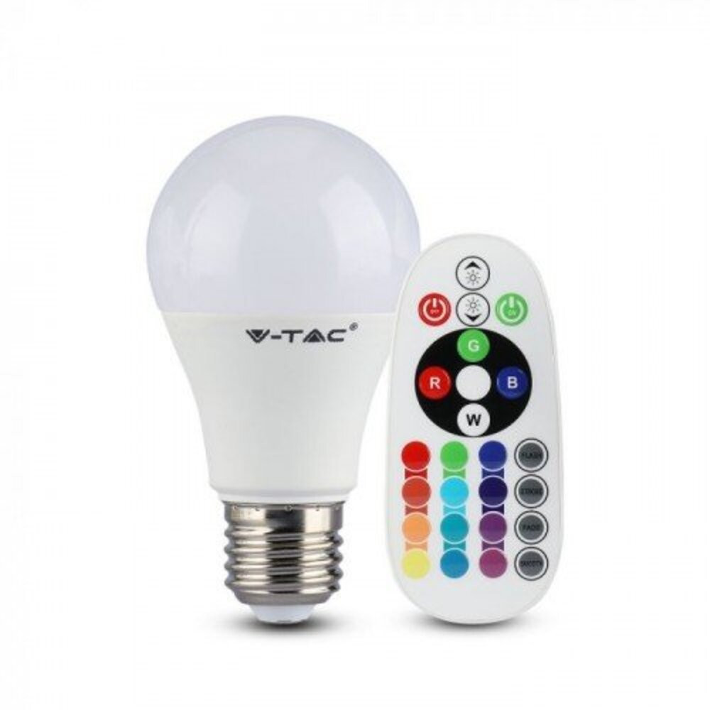LED lámpa , égő , körte , E27 , 9W , dimmelhető , RGBW , W=meleg fehér , távirányítóval