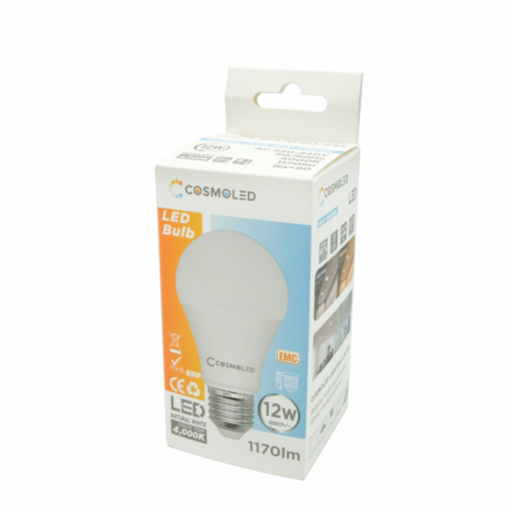 LED lámpa , égő , körte , E27 foglalat , 12W , természetes fehér , A60 , COSMOLED