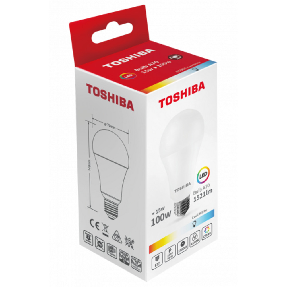 LED lámpa , égő , körte , E27 foglalat , 15 Watt , 180° , hideg fehér , TOSHIBA , 5 év garancia