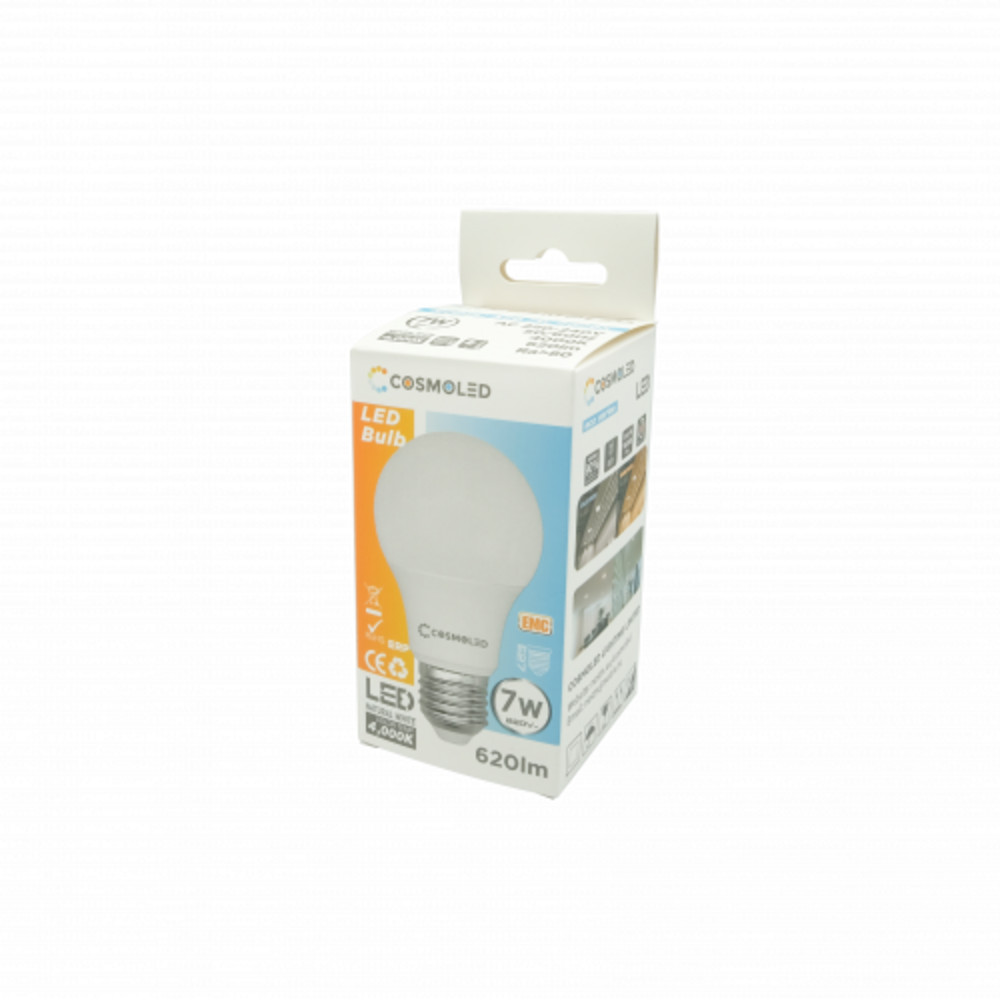 LED lámpa , égő , körte , E27 foglalat , 7W , természetes fehér , A60 , COSMOLED