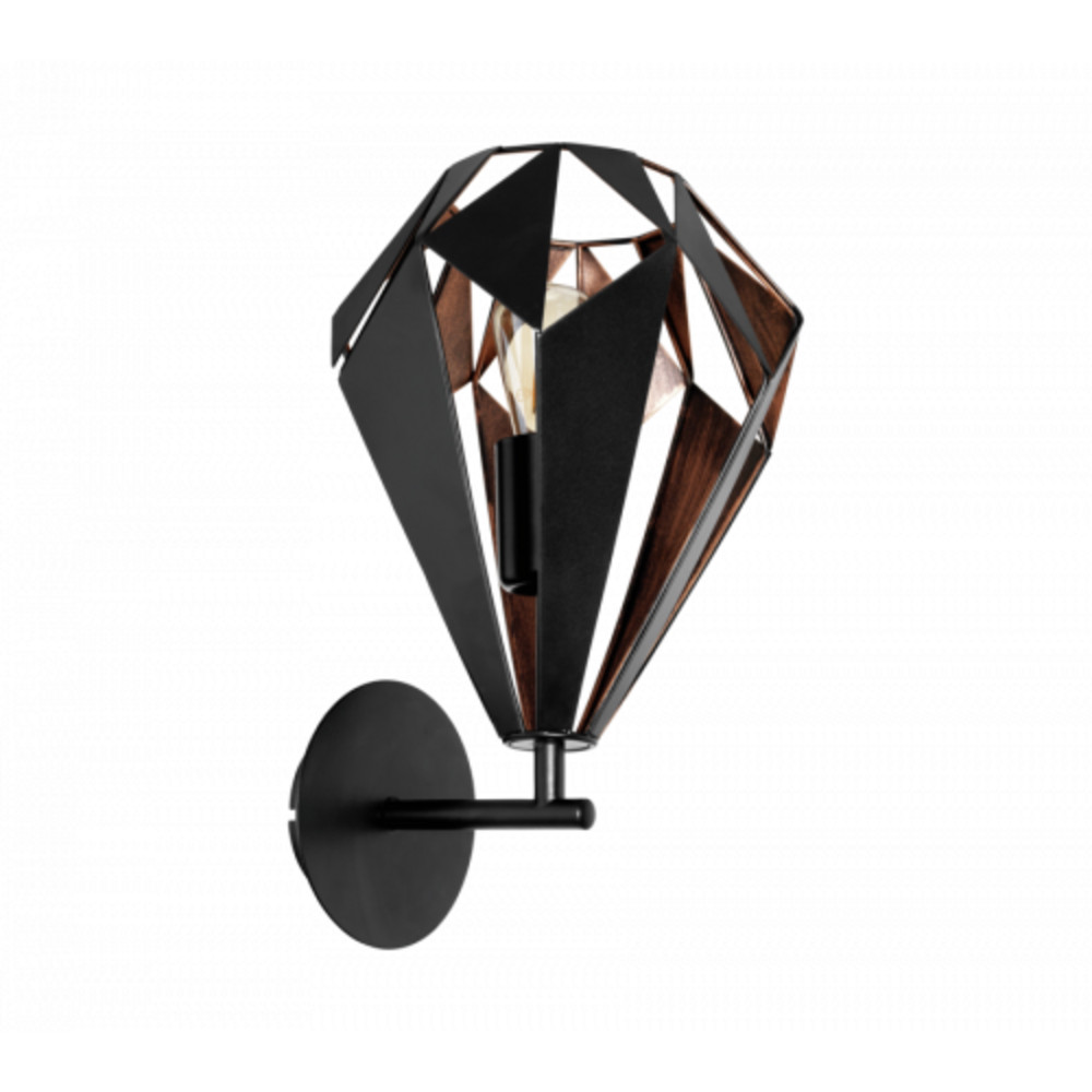LED lámpa , fali , E27 , acél , fekete , vörösréz , EGLO , CARLTON 1 , 49992