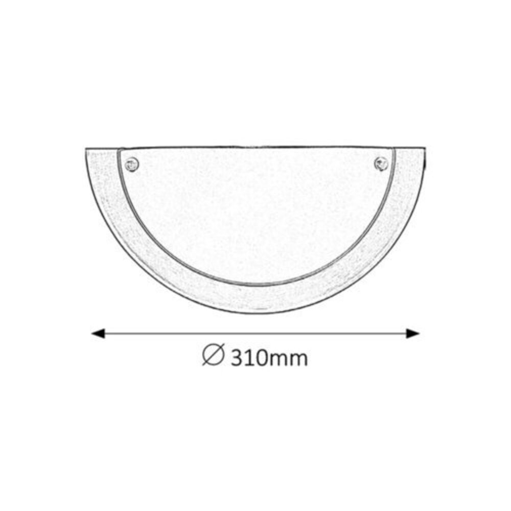 Időtlen stílusú fali lámpa szatin króm színű, fém lámpatesttel, fehér színű üveg lámpabúrával, 31 cm-es szélességggel. A lámpatest E27-es foglalatkilakítású, max. 60W teljesítményű, halogén vagy energiatakarékos fényforrással is használható.