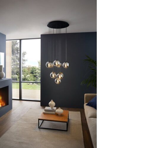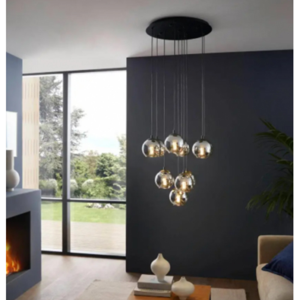 LED lámpa , függeszték , mennyezeti , 65.5 cm , 10 x E27 foglalat , fekete , EGLO , ARISCANI , 98654