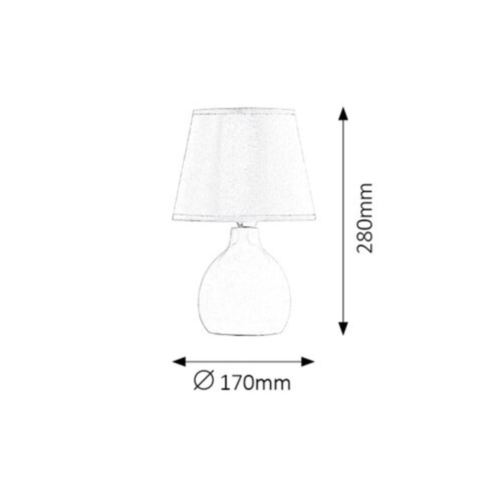 Időtlen megjelenésű éjjeli lámpa 1 db foglalattal. 28 cm magas, 17 cm átmérőjű lámpatest krém színű kerámia lámpatesttel és textil lámpaernyővel, vezetékes kapcsolóval és IP20-as védettséggel. Az asztali lámpa E-14-es foglalatkialakítású, max. 40W teljesítményű izzóval használható.