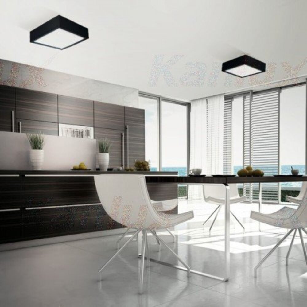 LED lámpatest , mennyezeti , 3 x E27 , négyzet , matt fekete , fa , üveg , MERSA