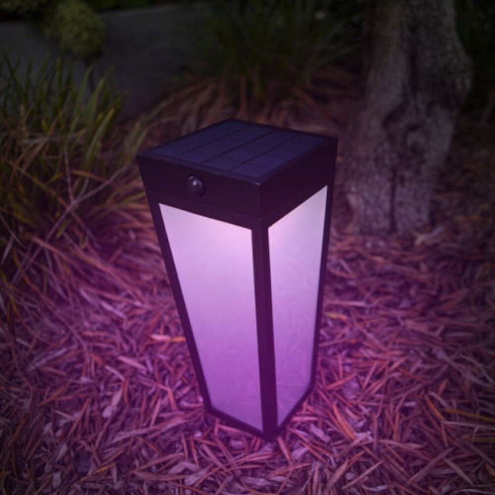 LED lámpatest , napelemes , földbe szúrható , RGB , CCT , matt fekete , kültéri , mozgásérzékelővel , IP44 , LUTEC connect , DIAS