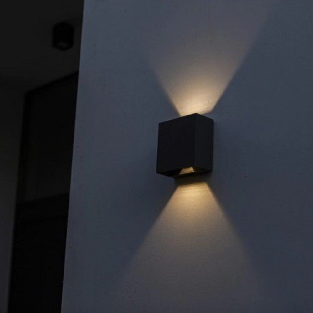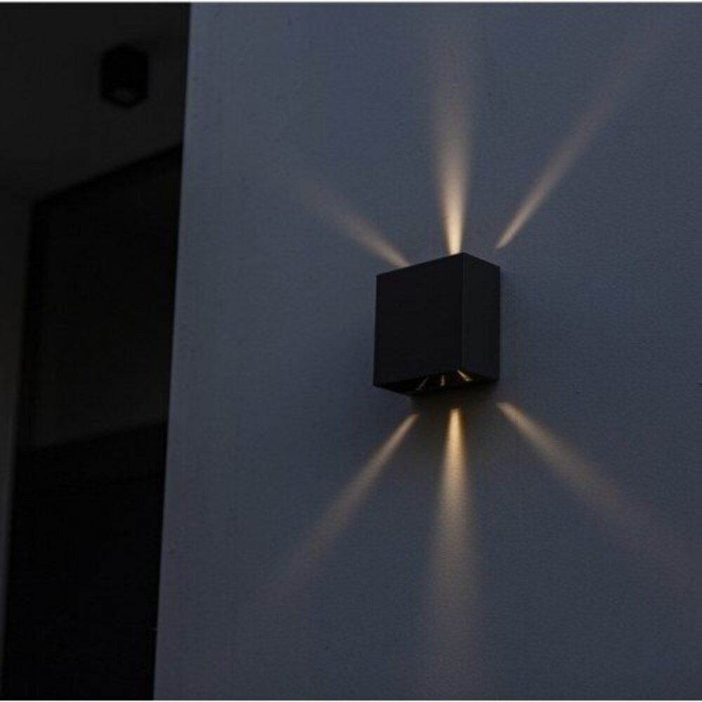 LED lámpatest , oldalfali , 2 irányú, 7.5W , állítható sugárzási szög , meleg fehér , matt fekete , kültéri , IP54 , LUTEC , GEMINI BEAMS