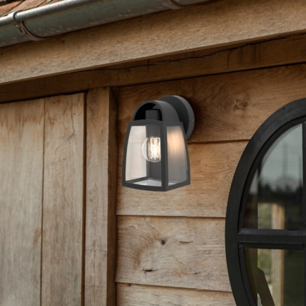 LED lámpatest , oldalfali , E27 foglalat , matt fekete , átlátszó üveg, kültéri , IP44 , LUTEC , KELSEY
