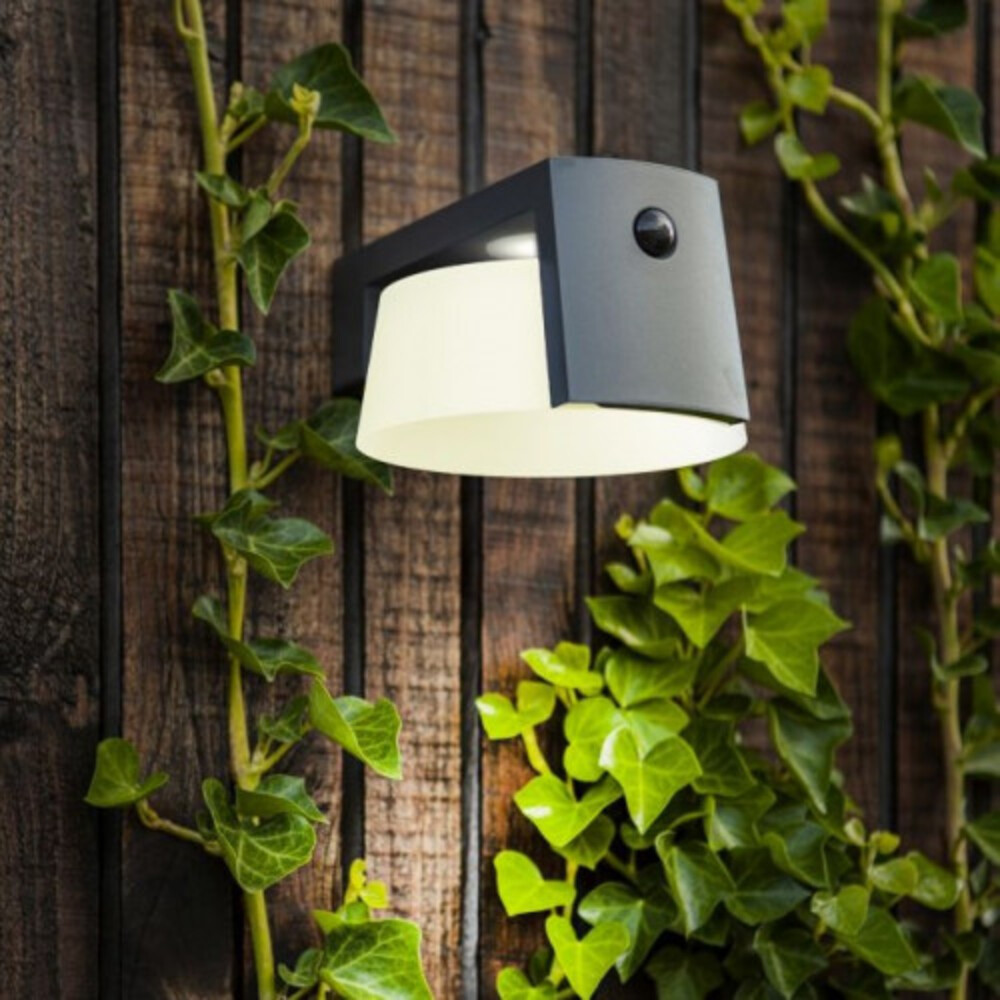 LED lámpatest , oldalfali , napelemes , 9.5 W , természetes fehér , kültéri , IP44 , mozgásérzékelővel , LUTEC , MOON