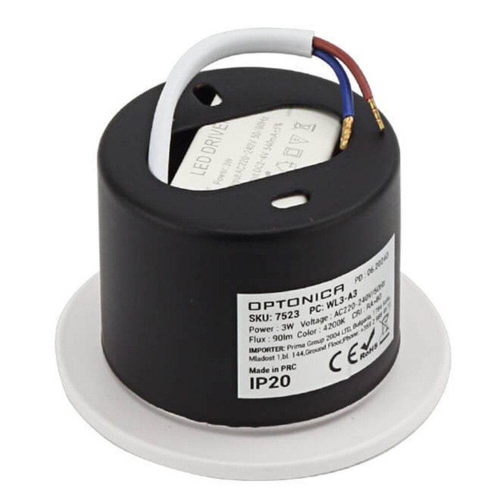 LED lépcsőlámpa fehér, kerek, 3W, 3000K, meleg fehér, 90 lm, Optonica, 7522