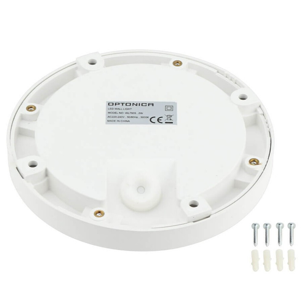 LED lépcsőlámpa kerek fehér, 2W, 3000K, meleg fehér, 80 lm, IP65, Optonica, 7505