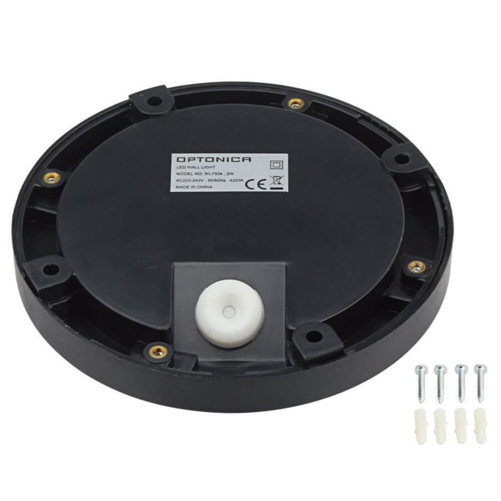 LED lépcsőlámpa kerek, fekete, 2W, 3000K, meleg fehér, 80 lm, IP65, Optonica, 7503