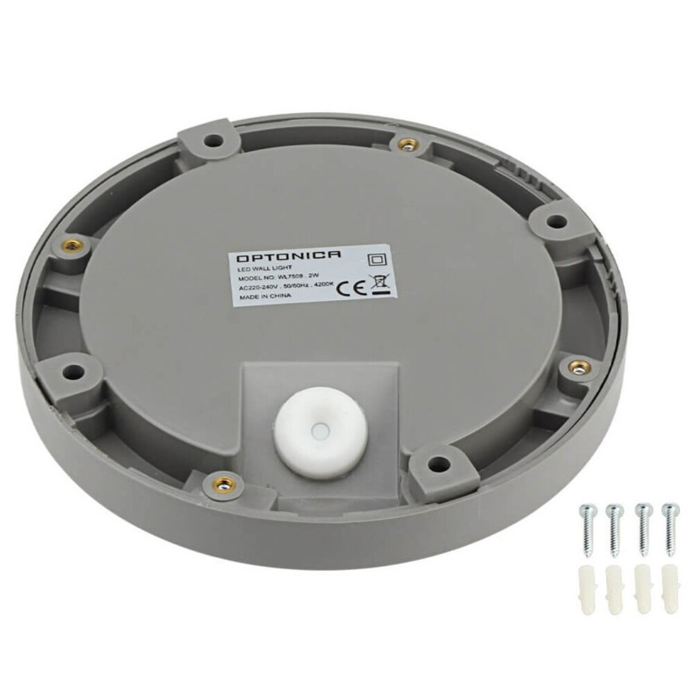 LED lépcsőlámpa kerek, szürke, 2W, 3000K, meleg fehér, 80 lm, IP65, Optonica, 7507