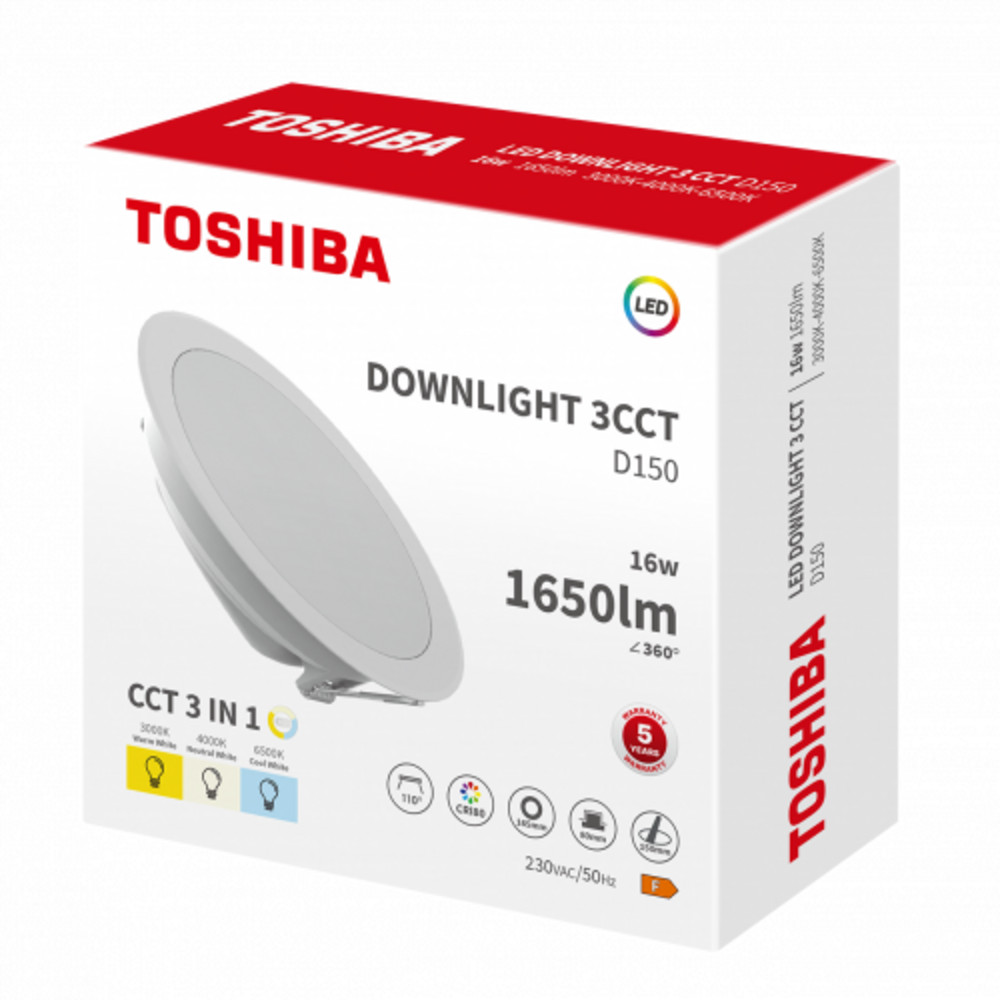 LED panel , mélysugárzó , 16W , süllyesztett , kerek , 3in1 CCT , IP40/IP20 , TOSHIBA , 5 év garancia