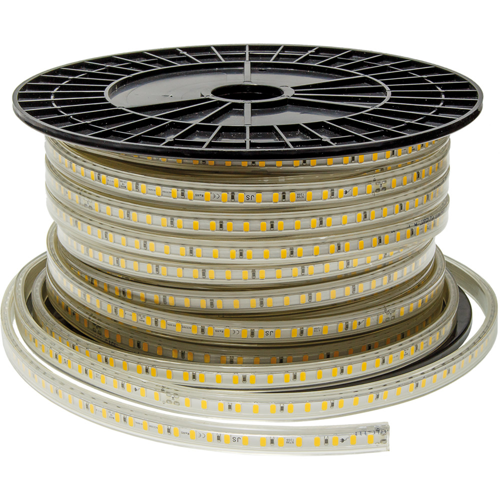 Magas fényhasznosítású 5730 típusú LED-csippekkel szerelt szalag, közvetlenül 220V hálózatról üzemeltethető. A 4000K színhőmérséklet természetes, semleges fehér fényt biztosít, amely ideális munkaterületekhez, konyhákhoz, fürdőszobákhoz és kereskedelmi terekhez, ahol szemkímélő, valósághű színmegjelenítésre van szükség. A termék dimmelhető, így szabályozható a fényerő az egyéni igényeknek megfelelően (a megfelelő, LED-szalagokhoz alkalmas dimmer alkalmazása javasolt). IP65 védettségének köszönhetően por- és fröccsenő víz ellen védett, kültéri takart világításokhoz, erkélyekhez és nedves helyiségekhez is alkalmas.