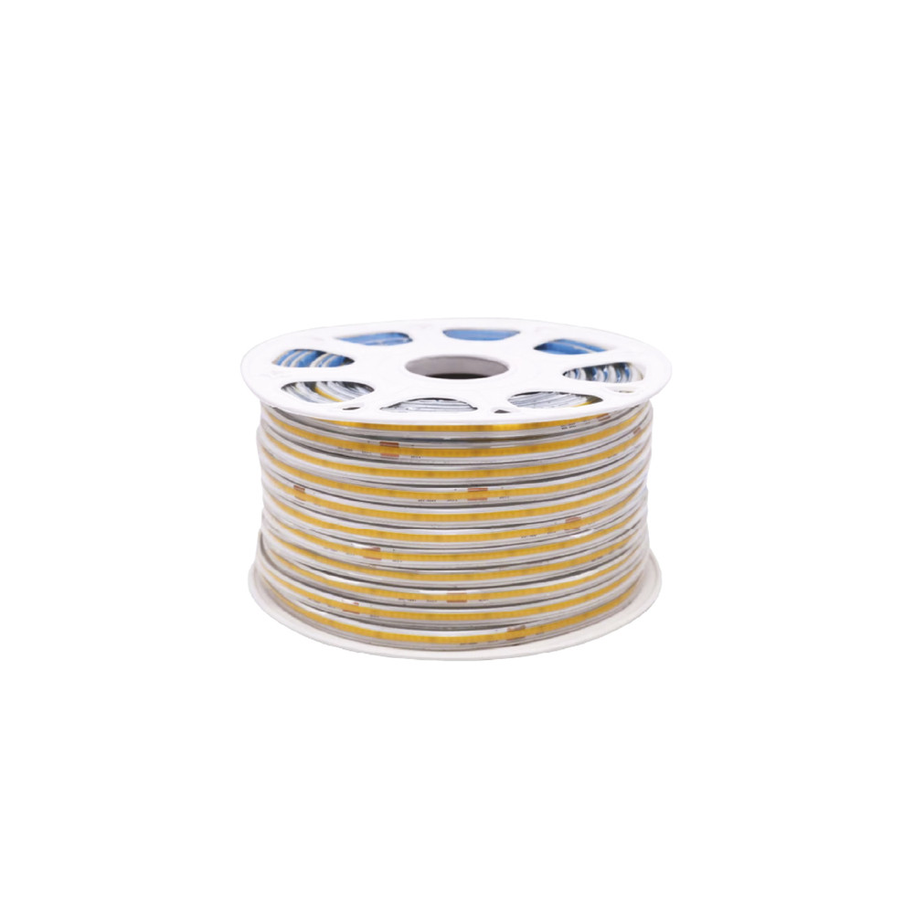Ez a 220 V-ról közvetlenül üzemeltethető COB (Chip-on-Board) LED szalag kompakt, egyenletes fénycsíkként szolgál, amely magas pixelsűrűséggel és homogén megvilágítással rendelkezik. Hideg fehér (6000 K) színhőmérsékletet biztosít, dimmelhető kivitelben, IP65 védelemmel, így nedves környezetben is alkalmazható. Ideális választás munkaterek, kirakatok, rejtett világítások és építészeti accentek megvilágítására.