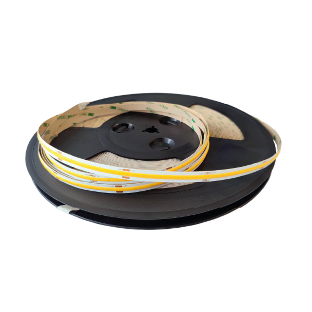 Ez a magas fényű COB LED szalag kompakt, homogén fényt biztosít nagy, 624 LED/m-es sűrűséggel, így ideális folyamatos, árnyékmentes világítási megoldásokhoz. A CCT funkció lehetővé teszi a színhőmérséklet változtatását meleg és hideg fehér között, így egyetlen rendszerrel alakítható ki hangulat- vagy munkavilágítás. A szalag 24 V-os táplálást igényel, teljesítménye 7+7 W/m, fényárama 700 lm/m, és dimmelhető tulajdonságának köszönhetően pontosan szabályozható a fényerő.
