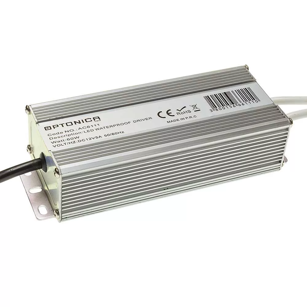 LED szalag tápegység fém vízálló, 60W, IP67, Optonica, 6111