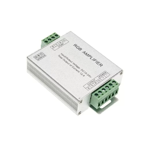 Optonica LED szalagerősítő, 144W, ezüst kivitel — professzionális kiegészítő LED szalagok hosszabbításához és több zóna egyidejű működtetéséhez. A készülék célja a vezérlőből érkező jel és teljesítmény helyreállítása és továbbítása, így lehetővé teszi, hogy a LED szalagok eredeti fényintenzitása és színe megmaradjon hosszabb távolságok vagy nagyobb terhelés esetén. 144W névleges teljesítménye alkalmas közepes teljesítményigényű installációkhoz; egyszerűen illeszthető meglévő LED vezérlőkhöz és tápellátáshoz. Ezüst színű, esztétikus háza jól illeszkedik látható elhelyezésű rendszerekhez, míg a mechanikai kialakítás a stabil rögzítést és megbízható csatlakoztatást támogatja. Telepítésekor fontos a bemeneti vezérlő és a tápegység megfelelő méretezése, valamint a polaritás és vezetékek helyes csatlakoztatása a zavartalan működés érdekében. Ajánlott felhasználási területek: hosszabb LED szalag-szakaszok, több zóna egyidejű vezérlése, nagyobb fényteljesítményű dekorációs vagy üzemi világítások. A termék előnyei: egyszerű integráció meglévő rendszerekbe, stabil jeltovábbítás, esztétikus kivitel és megnövelt rendszerteljesítmény. Telepítést és üzembe helyezést mindig a gyártó vagy szakképzett villanyszerelő utasításai szerint végezze.