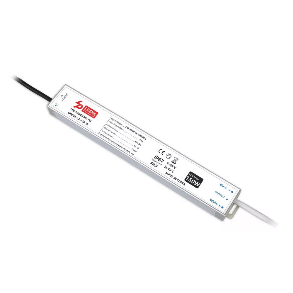 LED tápegység , 12 Volt , 150 Watt , 12.5A , slim , kültéri , vízálló , IP67 , 3+2 év garancia , LEDis , LD-150-12