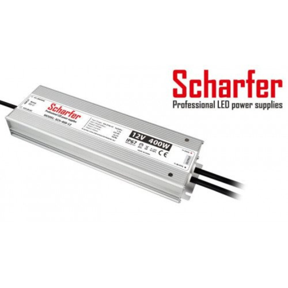 LED tápegység , 12 Volt , 400 Watt , 33.3A , kültéri , vízálló , IP67 , Scharfer , 7 év garancia