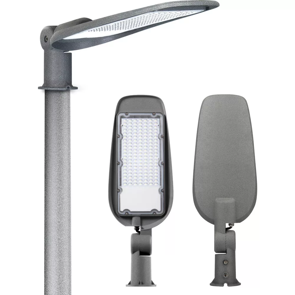 Kiváló minőségű LED utcai lámpa, PF > 0,9, 150 W teljesítménnyel, 2700 K (meleg fehér) színhőmérséklettel és 15 000 lm névleges fényárammal. A magas teljesítménytényező és hatékony LED modulok alacsony energiafogyasztást és egyenletes, jó fényhasznosítást biztosítanak, minimalizálva a hálózati veszteségeket. Robusztus, kültéri kialakítású ház IP65 védettséggel – por- és vízálló kivitel, amely ellenáll a külső időjárási hatásoknak. Ideális utcai, park-, tér- és járdavilágításhoz, valamint közterületi és ipari külső megvilágításokra, ahol meleg, hangulatos fényre és tartós működésre van szükség. Alacsony karbantartási igény, hosszú élettartam és stabil meghajtóegység jellemzi, így költséghatékony megoldást nyújt a közvilágítás modernizálásához.