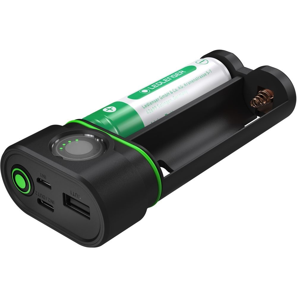 Ledlenser Flex10 Powerbank hat funkciót kínál robusztus és vízálló házban: külső akkumulátor, akkumulátortöltő töltöttségi szintjelzővel, biztonságos akkumulátortárolás, kijelző a kapacitás ellenőrzéséhez, kettős védelem rövidzárlat ellen és gyors akkumulátorcsere. A Flex10 Powerbank két darab 21700 típusú akkumulátort tartalmaz (tartozék), amelyek kapacitása 9000 mAh.