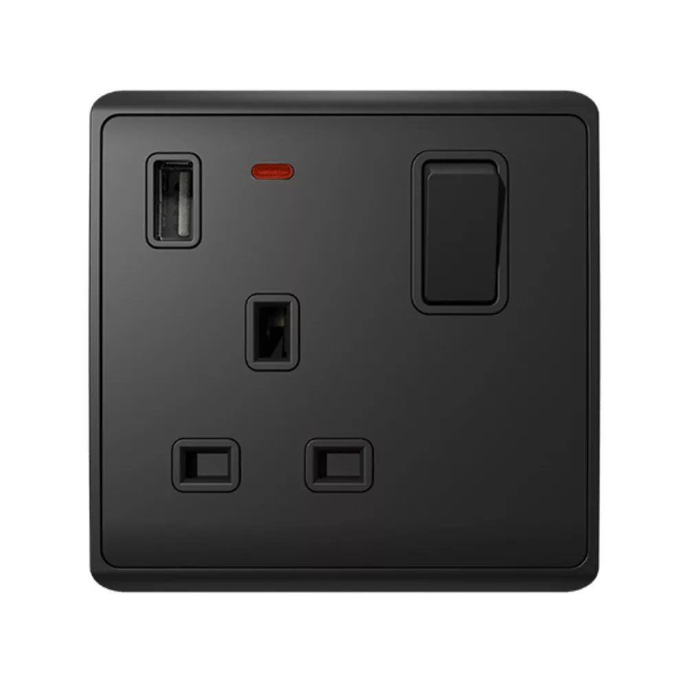 LONDON SINGLE SOCKET 1P BUTTON SWITCH NEON+USB AN