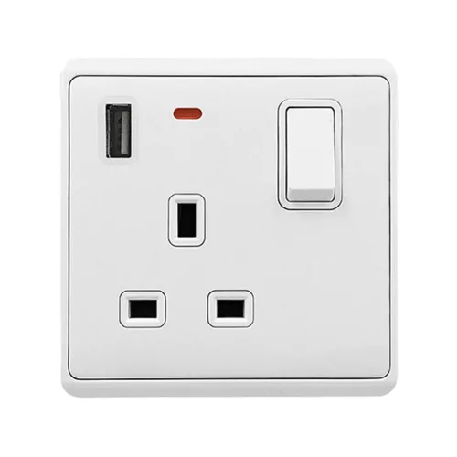 LONDON SINGLE SOCKET 1P BUTTON SWITCH NEON+USB WH