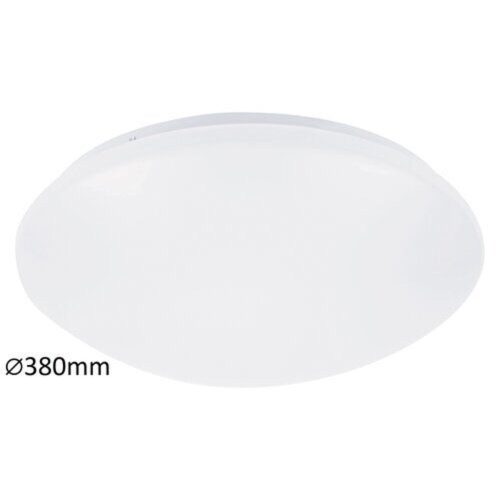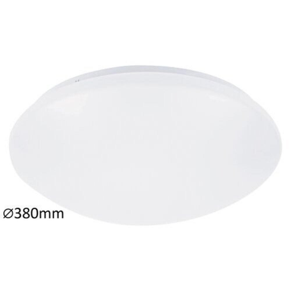 Időtlen megjelenésű mennyezeti lámpa beépített energiatakarékos LED fényforrással. 38 cm átmérőjű, fém ház és fehér színű műanyag lámpabúra. A beépített LED fényforrás 24W teljesítmény mellett 1800 lumenes fényerőt, valamint 4000 Kelvines, természetes fehér színű fényt biztosít. 5 év garanciával! 5 év garanciával. A lámpatestben a fényforrás nem cserélhető!