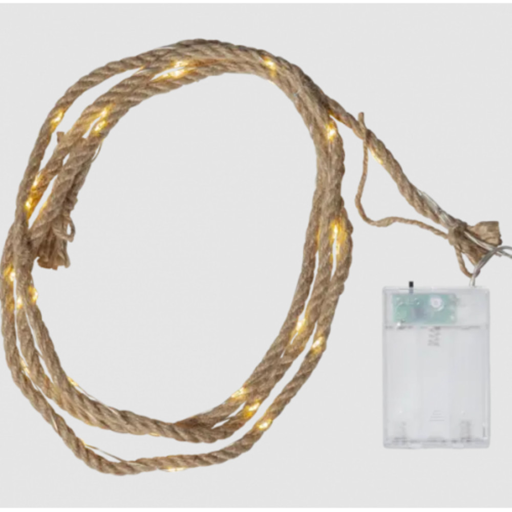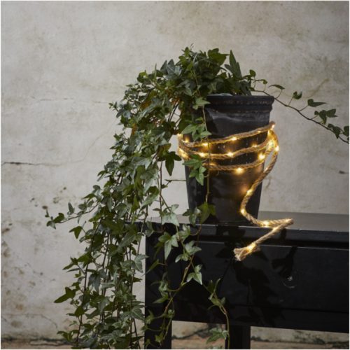 Elemes fényfüzér juta kötéllel és 40 LED harmatcseppekkel.