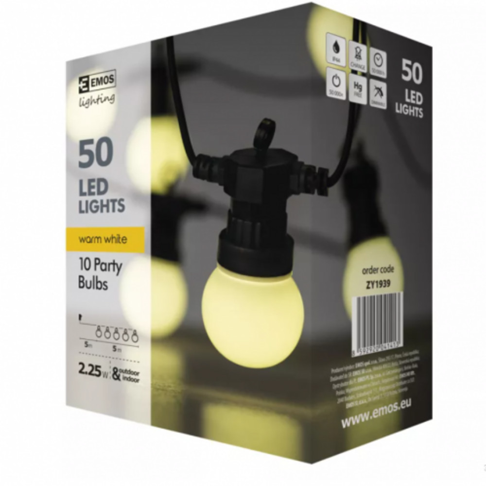 Led fényfüzér , beltéri/kültéri , 10 db , 5 m , meleg fehér , opál , IP44
