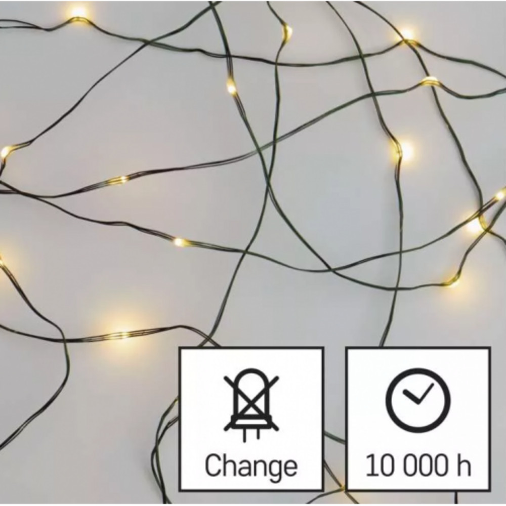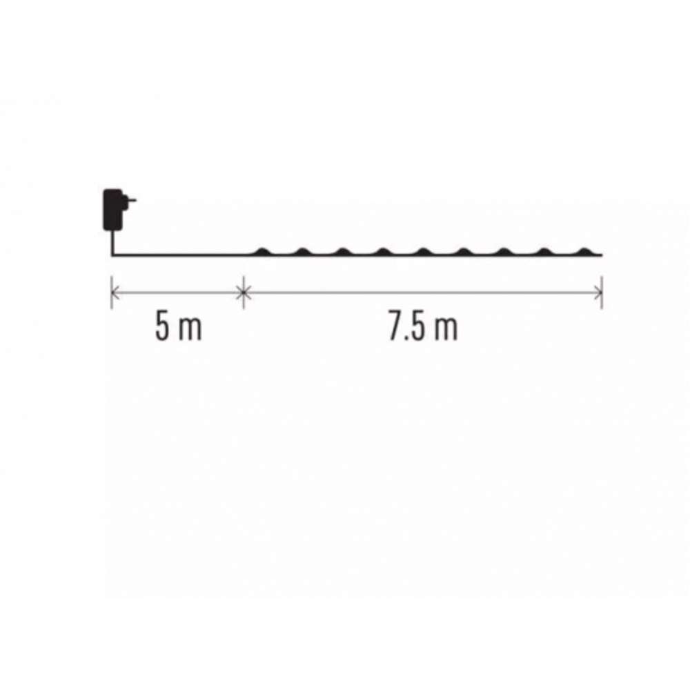 • A fényfüzér világítását meleg fehér nano LED-ek (75 db) biztosítják (LED-ek közti távolság 10 cm)