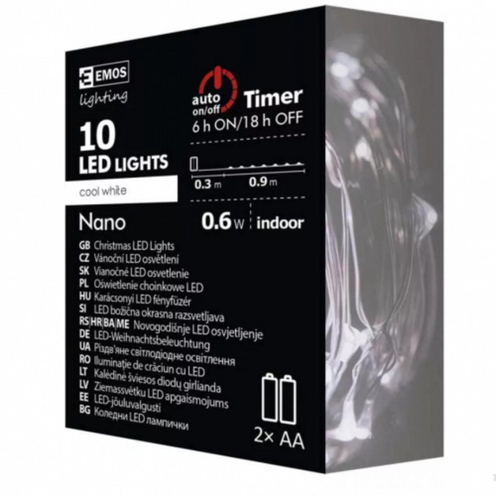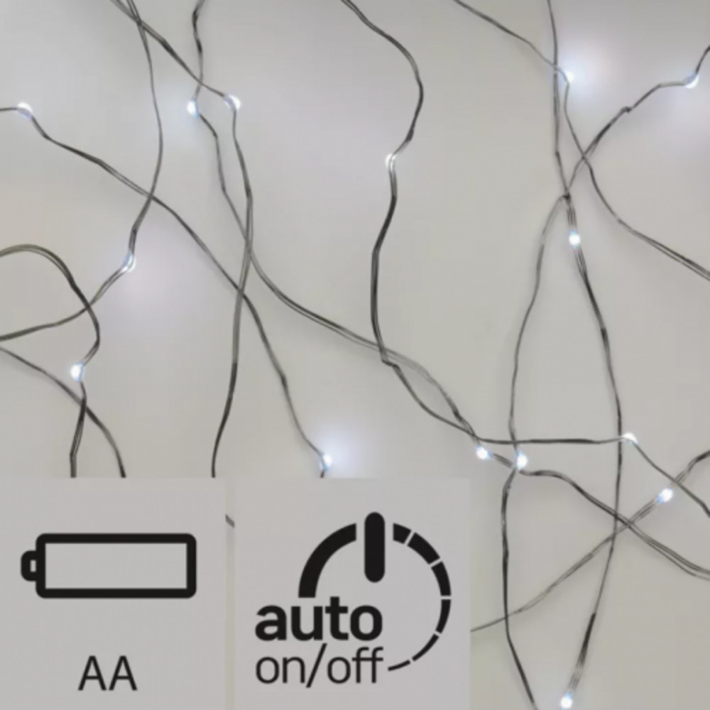 Led fényfüzér , beltéri , nano LED , 0.9 m , hideg fehér , ezüstszálas , időzíthető , elemes