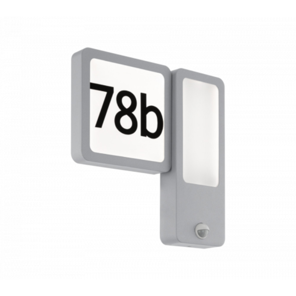 Led lámpatest , mozgásérzékelős , oldalfali , házszám kijelzéssel , 10 Watt , meleg fehér , kültéri , ezüst , IP44 , EGLO , CHEIRA , 97219