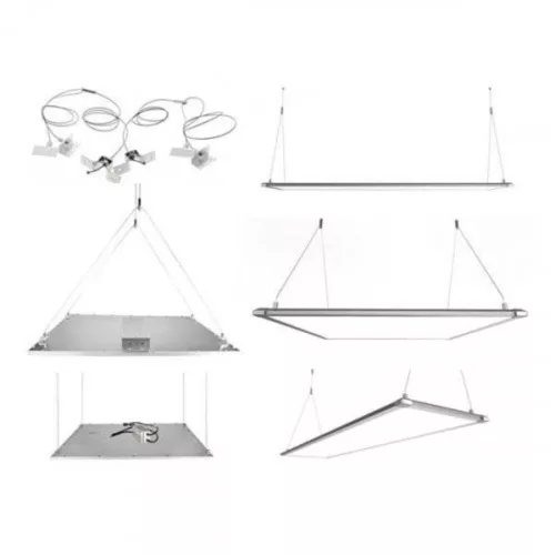 A készlet 4 sodrott acél huzalt tartalmaz, annak szerelvényeivel, csavarokkal, tiplikkel.