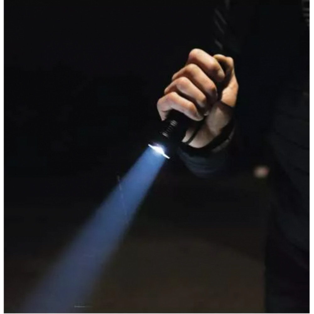 A fókuszálható zseblámpa csukószíjjal és strapabíró alumíniumvázzal 120 lumen fényerővel világít.