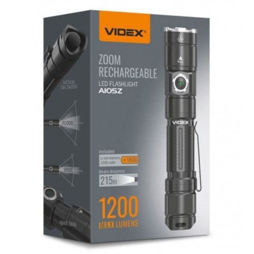 Led zseblámpa , hideg fehér , 1200 lumen , USB , IP44 , VIDEX