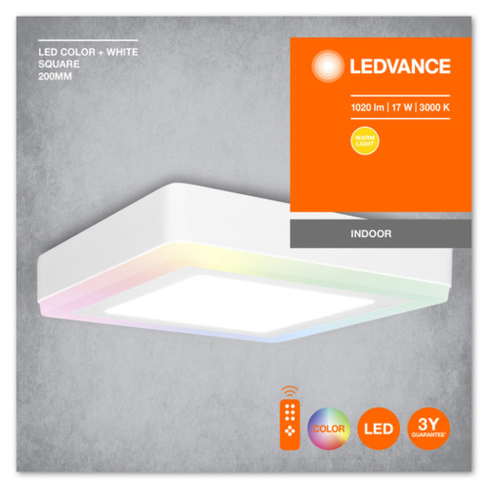 Ledvance LED Color + White Square LED lámpa távirányítóval 17W 3000K 700lm, 20x20cm, 780LM