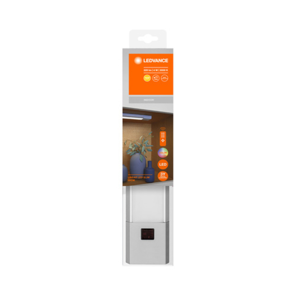 Ledvance Linear LED SLIM távirányítós pultvilágító LED lámpa mozgásérzékelővel, melegfehér, 4W, 30 cm, RGBW