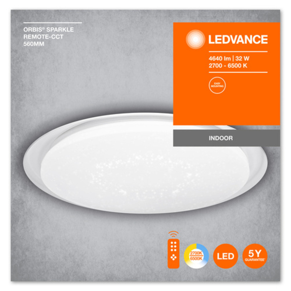 Ledvance Orbis Sparkle távirányítós mennyezeti lámpa csillám búrával, 2700-6500K, 32W