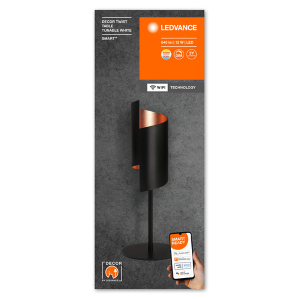 Ledvance Smart+ WIFI Decor Twist Table intelligens asztali LED lámpa fekete színben