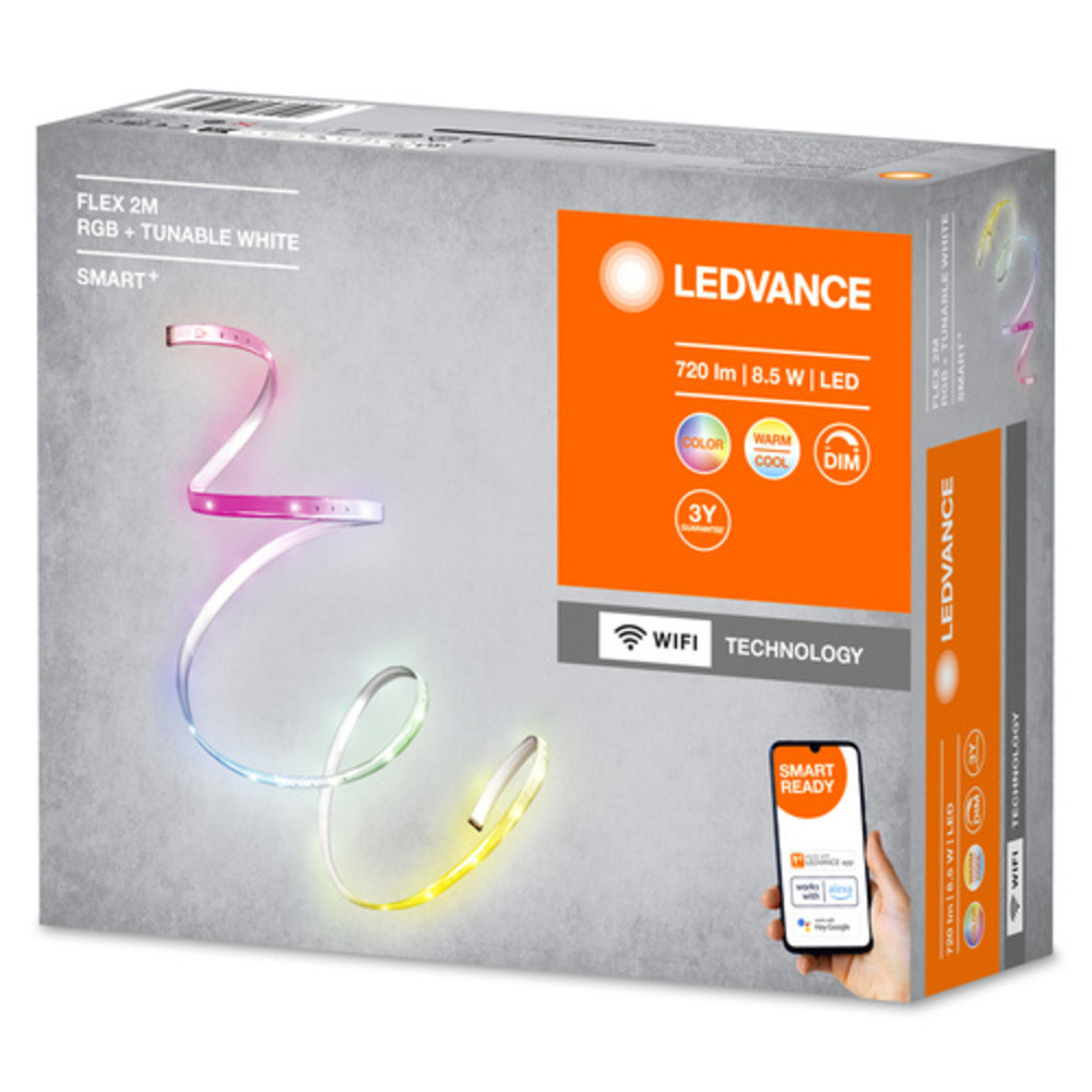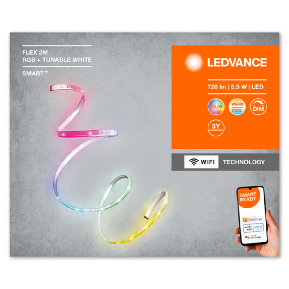 Termékjellemzők: Akár 5M hosszúságig kiterjeszthető. Állítható fényerő. Rugalmas, hajlítható LED csíkok. RGB színvezérlés, kb. 16 millió színopció állítható. Vezérelhető a LEDVANCE SMART+ WiFi alkalmazáson keresztül (minimum Android™️ 4.4 vagy iOS 10.0 szükséges). A hangvezérlés a Hey Google vagy Alexa segítségével működik.