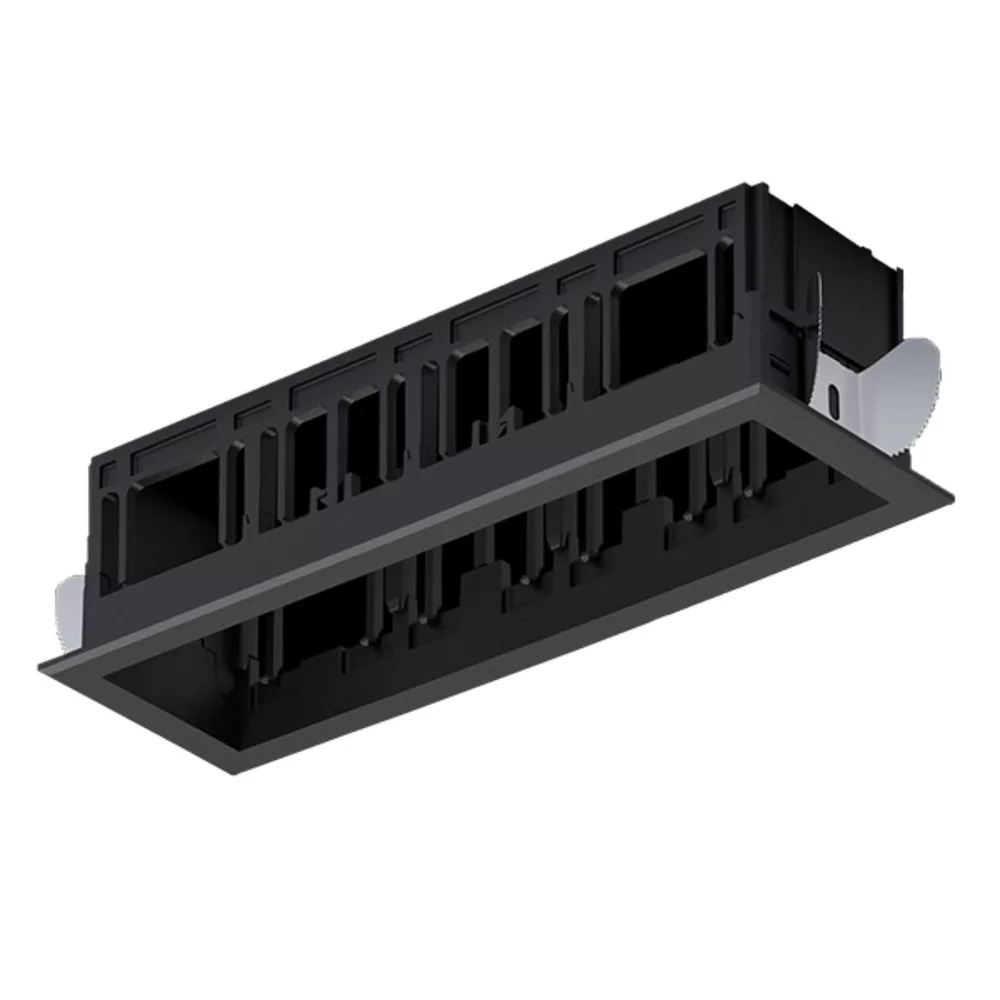 A MODENA 4 MODULE RECESSED BOX WITH FRAME BLACK egy innovatív és modern megoldás az ingatlanok világítási igényeinek kielégítésére. Az elegáns fekete keret nemcsak esztétikailag vonzó, hanem kiválóan illeszkedik bármely belső térbe, legyen szó lakó- vagy kereskedelmi környezetről. Az elrejtett, LED világítás hatékony fényforrást biztosít, melynek élettartama átlagosan 25 000 óra, így hosszú távú használatra tervezett. A termék mérete és kialakítása lehetővé teszi, hogy könnyen integrálható legyen különböző mennyezet típusokba, mindezt minimális károsodás mellett.