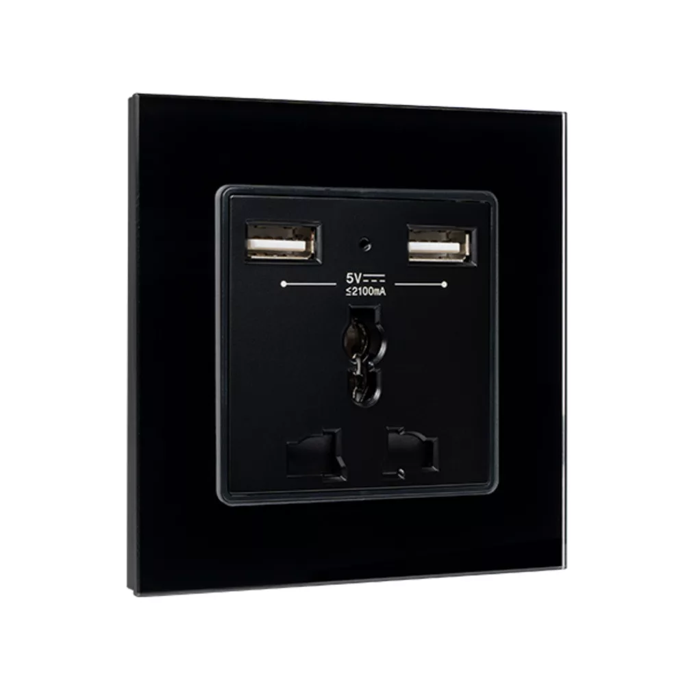 MULTI-FUNCT. SOCKET 16A WITH 2XUSB GLASS FRAME BL