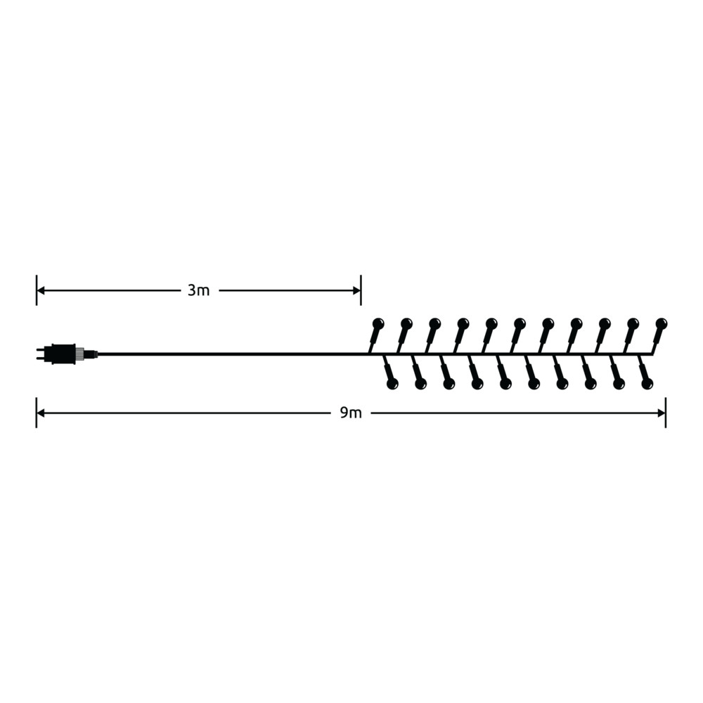 Méreteit tekintve 9 méter hosszú, ebből 6 métert tesz ki a fénnyel teli zöld kábel amikre összesen 576 darab LED chip van szerelve, 3 méter pedig a csatlakozó. Felhelyezése roppant egyszerű. Csatlakozás szempontjából EU szabvány dugvillával csatlakoztatható a hálózatra.